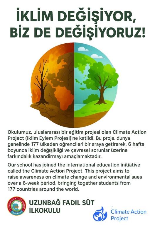 Okulumuz, uluslararası bir eğitim projesi olan Climate Action Project (İklim Eylem Projesi)'ne katıldı. Bu proje, dünya genelinde 177 ülkeden öğrencileri bir araya getirerek,